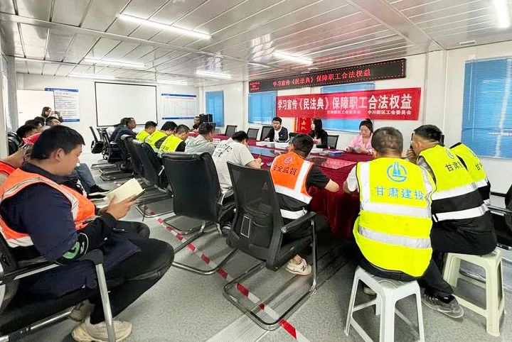 近日,中川园区工会邀请新区工会、园区建设局在辖区建筑工地开展“民法典 护航企业发展”宣传活动。