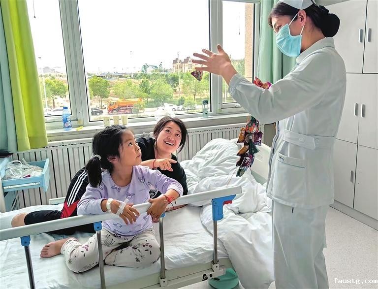 护士给小朋友免费发放中药香囊。