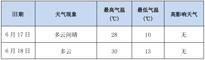 预计17至18日白天,受偏西气流影响,新区天气多云间晴,午后气温较高;19日,受冷空气影响,新区气温有所下降。